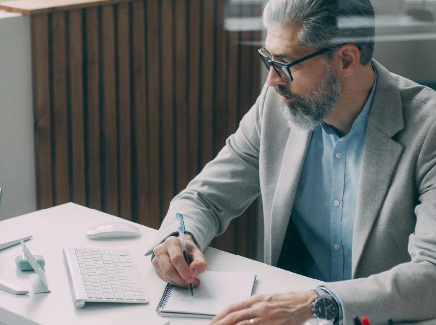 Centura Advisors financial planner working on investment strategies with laptop and phone in Baton Rouge
